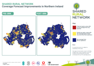 In Northern Ireland work on the SRN has now completed. Thanks to the programme coverage from all four operators has risen to 85%, up from 75% and coverage from at least one operator rose from 97% to 98%. (click map to enlarge).