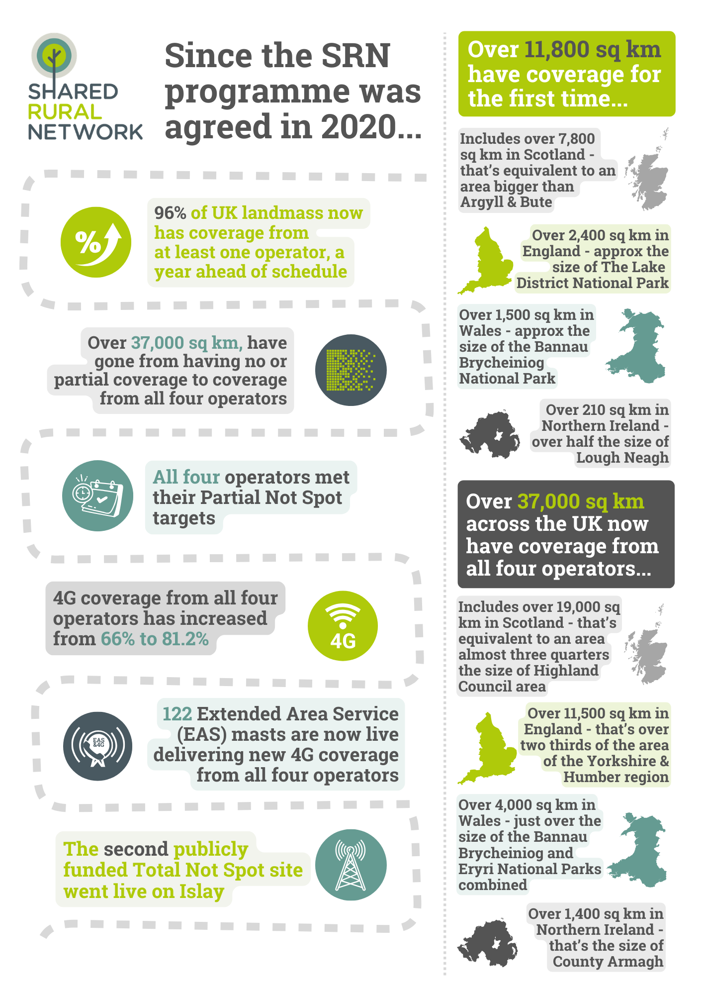 As part of the Shared Rural Network programme, UK Government funding is being made available to the Home Office and mobile network operators (MNOs) to upgrade Extended Area Service (EAS) masts being built as part of the Emergency Services Network (ESN) to make them usable by the four MNOs to offer commercial connectivity as well as emergency services coverage. However, in some cases it may not be possible to due to technical, financial or other reasons, such as planning.